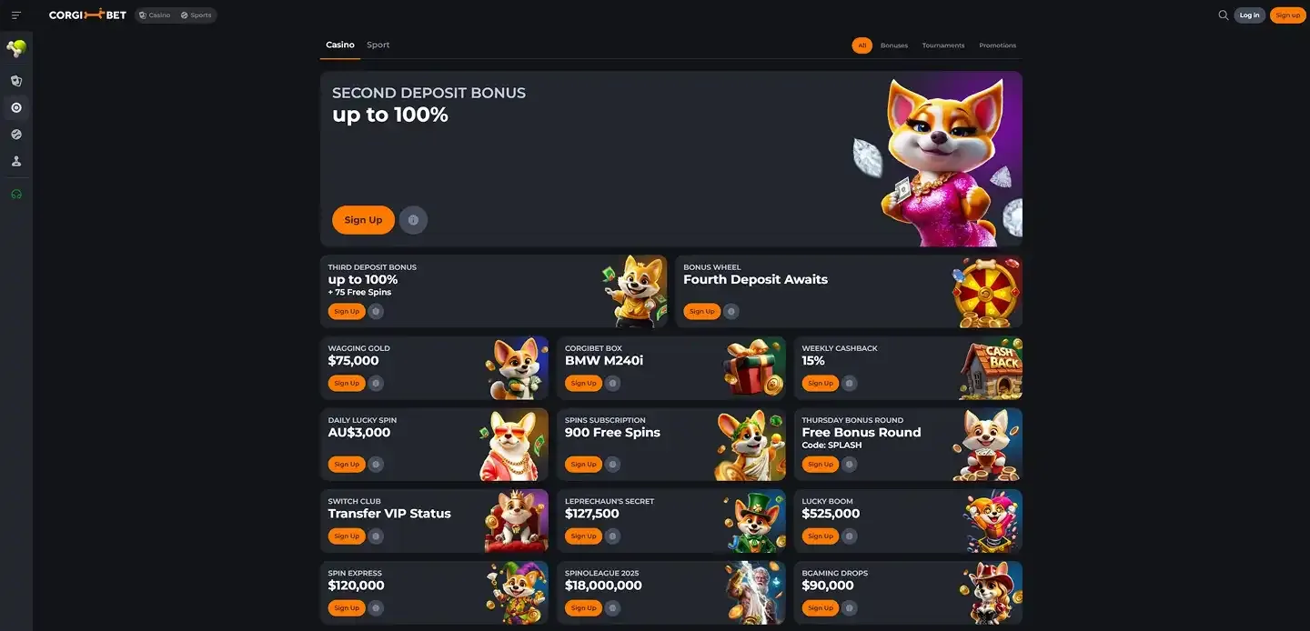 Corgibet Casino Rodadas Grátis e Bónus de Recarga